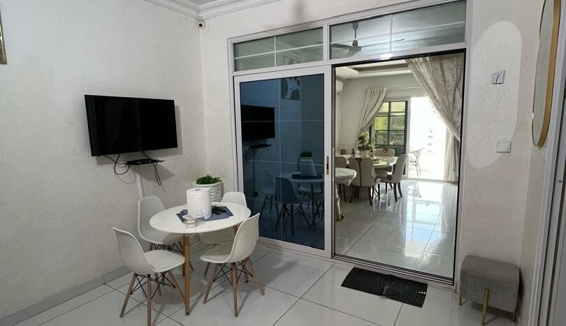 Il est composé d’un grand salon avec une terrasse et une vie très dégagée, de trois chambres dont une avec salle de bain et une salle d’eau pour chacune des deux autres chambres, une toilette visiteur, une cuisine équipée avec buanderie +toilette domestique et un espace familial.