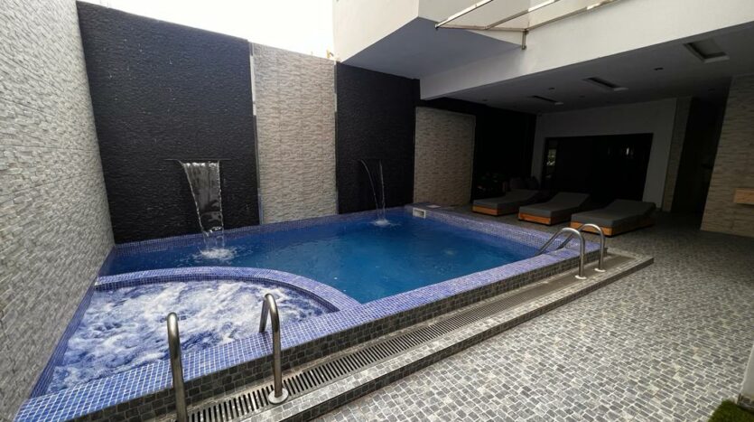 L’appartement se trouve dans un immeuble neuf avec parking, ascenseur, salle de gym ,piscine ,groupe électrogène et gardiennage 24h/24.