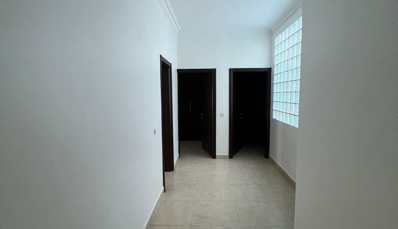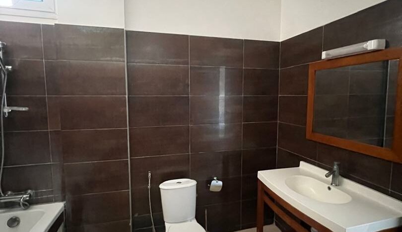 Il est composé d’un grand salon, de trois chambres avec chacune une salle d’eau, une toilette visiteur, une cuisine semi équipée,une buanderie et espace famililal.