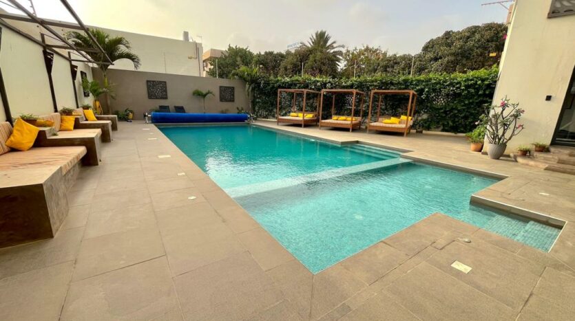Nous mettons en location un appartement de haut standing situé à Sacré coeur 1 dans une zone calme et sécurisée, avec trois chambres, une salle de bain, deux salles d’eau, une toilette visiteur,un grand salon donnant sur une terrasse avec une vue dégagée et une cuisine  équipée.L’appartement se trouve au 5e étage d’un immeuble récent avec  groupe électrogène ,gardiennage  24H/24 ,caméras de surveillance,barbelés électrique autour de la résidence ,deux réserves d’eau ,une  place de parking ,une grande piscine chauffée et une salle de sport.