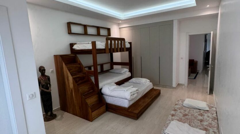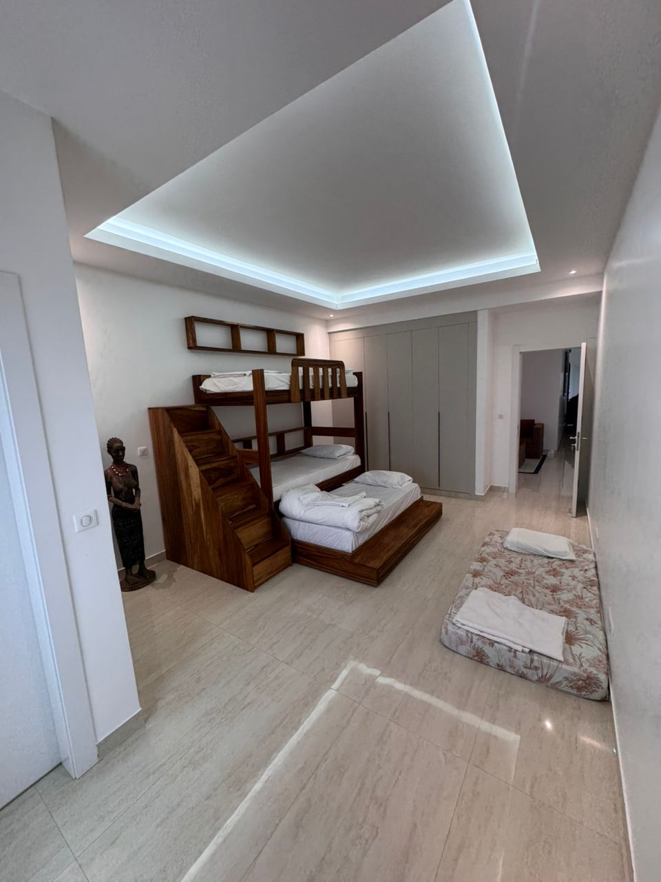 Situé à Fann Hock sur la corniche à 5mn du centre ville, nous vous proposons en location ce magnifique appartement F4 meublé , alliant confort et luxe .Il est composé d’un grand salon avec balcon qui offre une belle vue sur mer, une chambre parentale avec dressing + salle de bain et balcon avec vue mer, un espace familial aménagé, deux chambres enfants avec chacune une salle d’eau et des placads, une toilette visiteur et une cuisine entierement équipée +buanderie+toilette domestique.