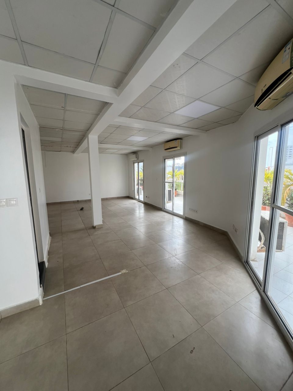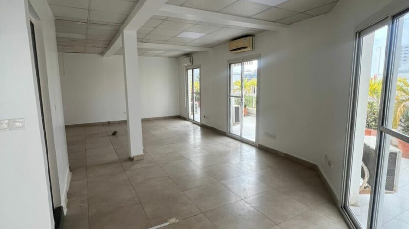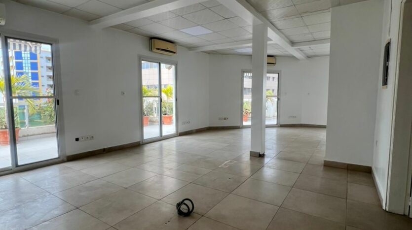 Nous mettons en location au point e , un plateau de Bureau d’une superficie de 220 m2 composé d’un bureau directeur + salle d’attente et salle d’eau ,une salle de réunion,un espace ouvert, trois toilettes et une grande terrasse.