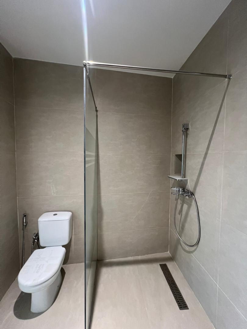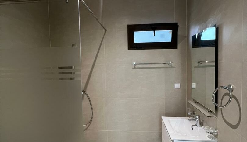 Trois chambres dont chacune avec sa salle d’eau, une toilette visiteurs , un salon spacieux et lumineux, une cuisine semi-équipée + buanderie,