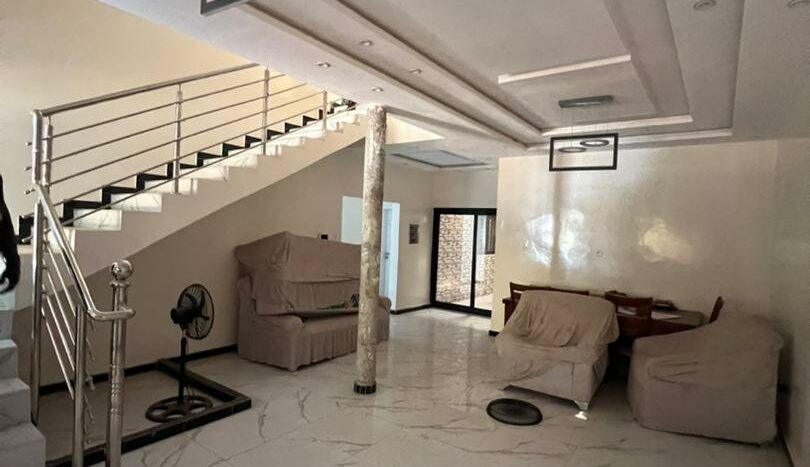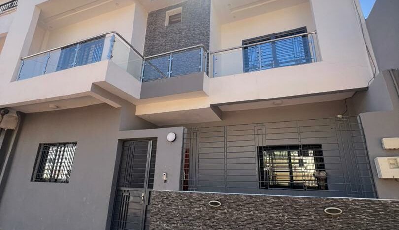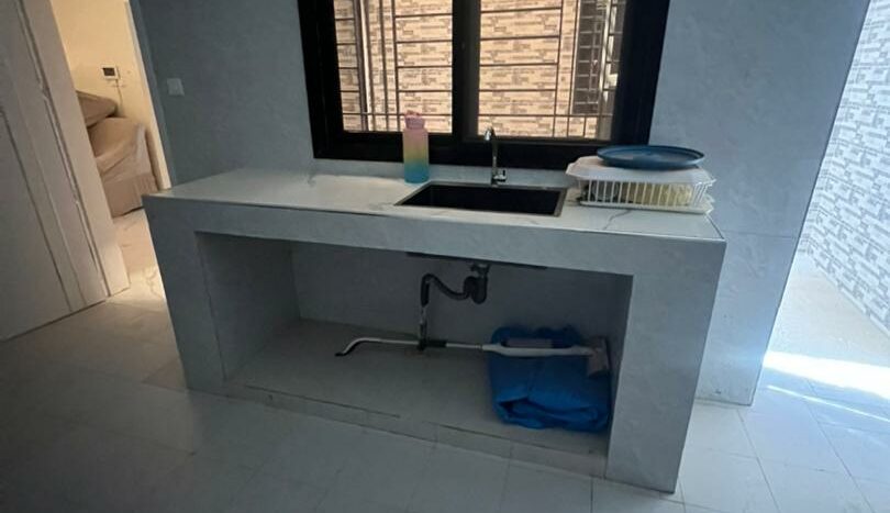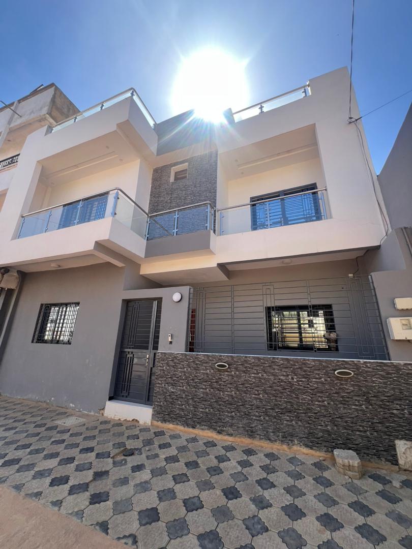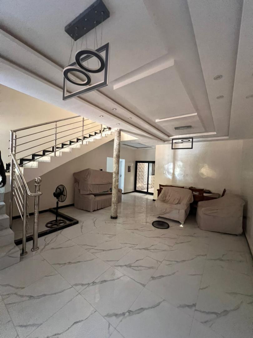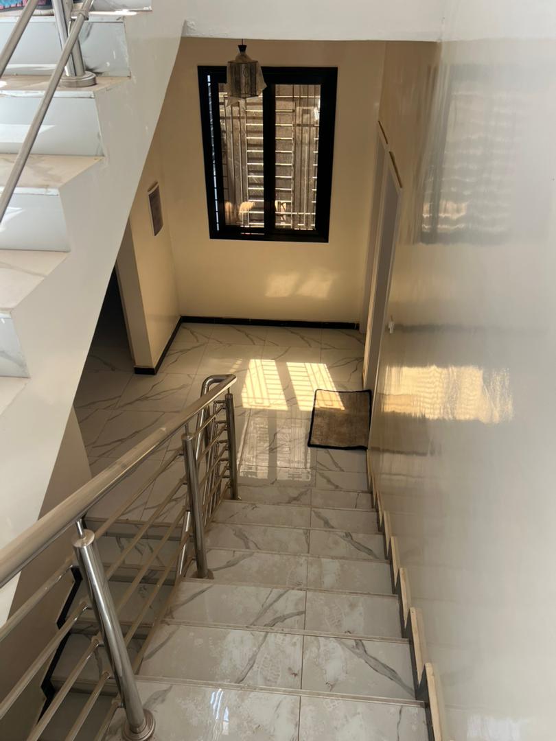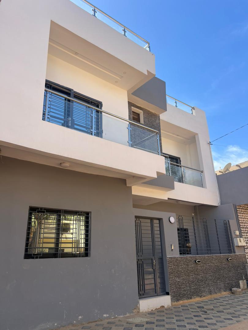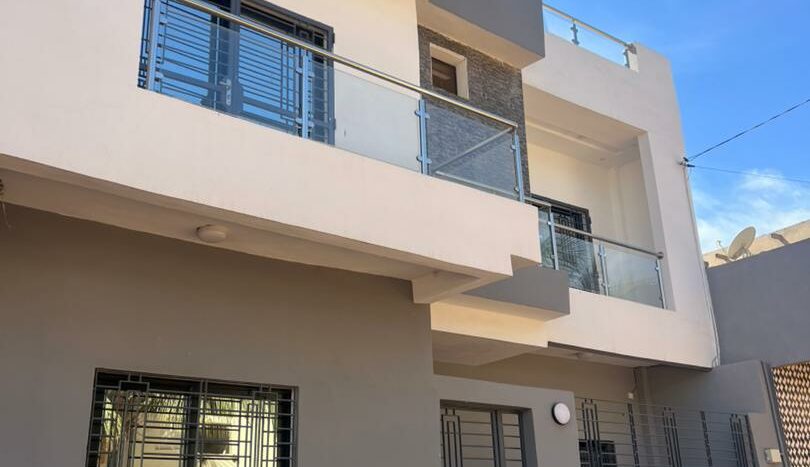A louer à Zac Mbao, une villa en R+1 composée au rdc: Une entrée salon, deux chambres avec chacune une salle d’eau ,une toilette visiteur, une cuisine et un patio.