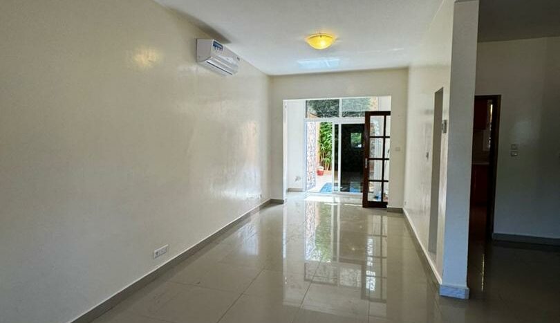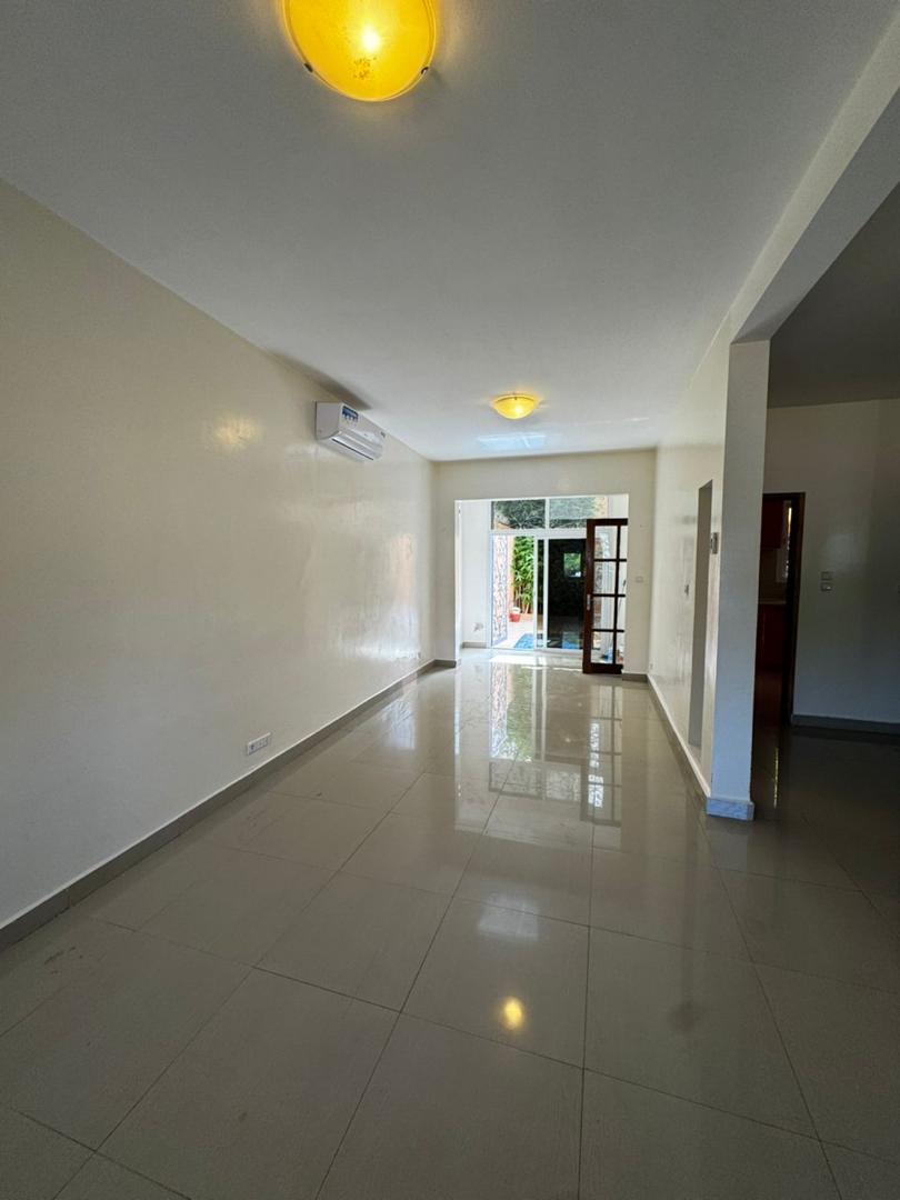A l’étage :trois chambres dont deux avec salle d’eau chacune et une toilette extérieure. Toutes les pièces sont climatisées et la villa dispose d’un garage pour voiture.